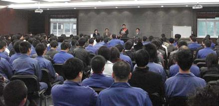 公司全體員工在歡迎會(huì)現(xiàn)場(chǎng)聆聽(tīng)程家信同志講話(huà)