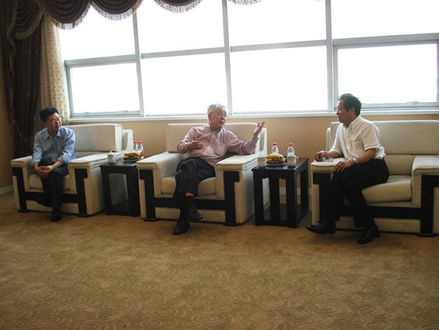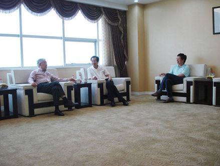 (圖為在會(huì)議室里。左(龍教授) 中(袁渭康院士) 右(我公司董事長虞培清))
