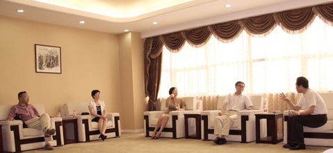 在公司待客會議室里,領(lǐng)導(dǎo)們侃侃而談,公司董事長虞培清熱情地向區(qū)領(lǐng)導(dǎo)們介紹了我公司的發(fā)展?fàn)顩r以及未
