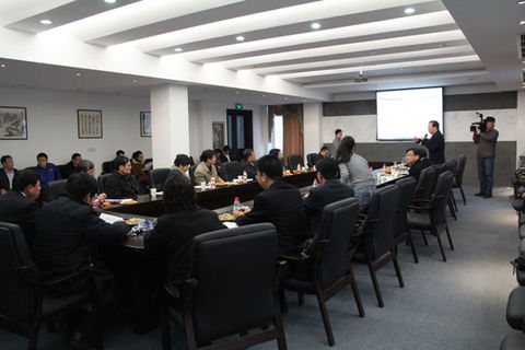 會議室里,虞董事長向大家介紹公司概況。肖書記頻頻點頭,稱贊我司。